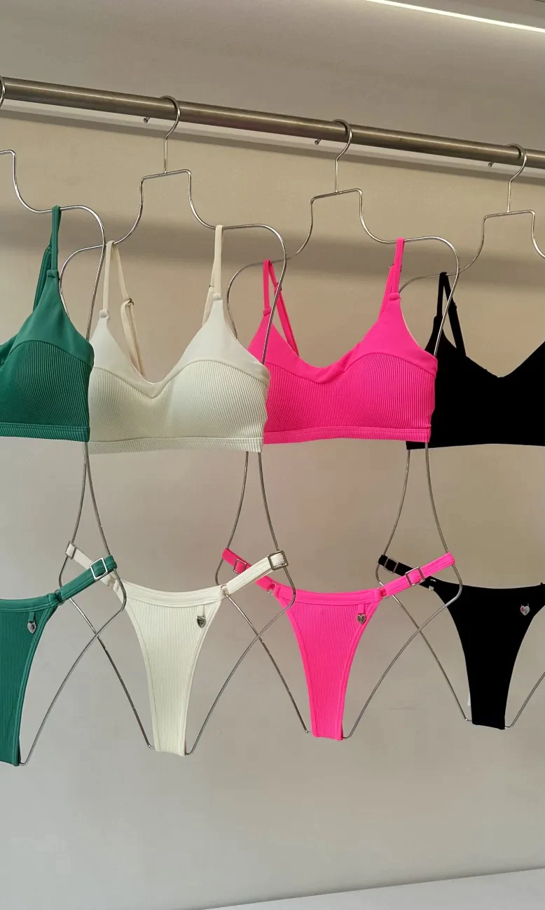 Top combinado liso y texturado. Almohadillas desmontables. Less con regulación