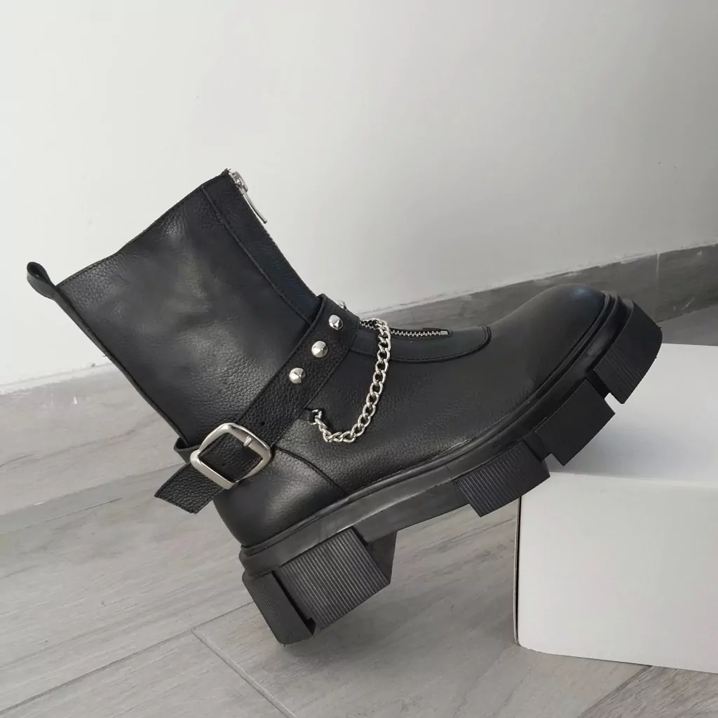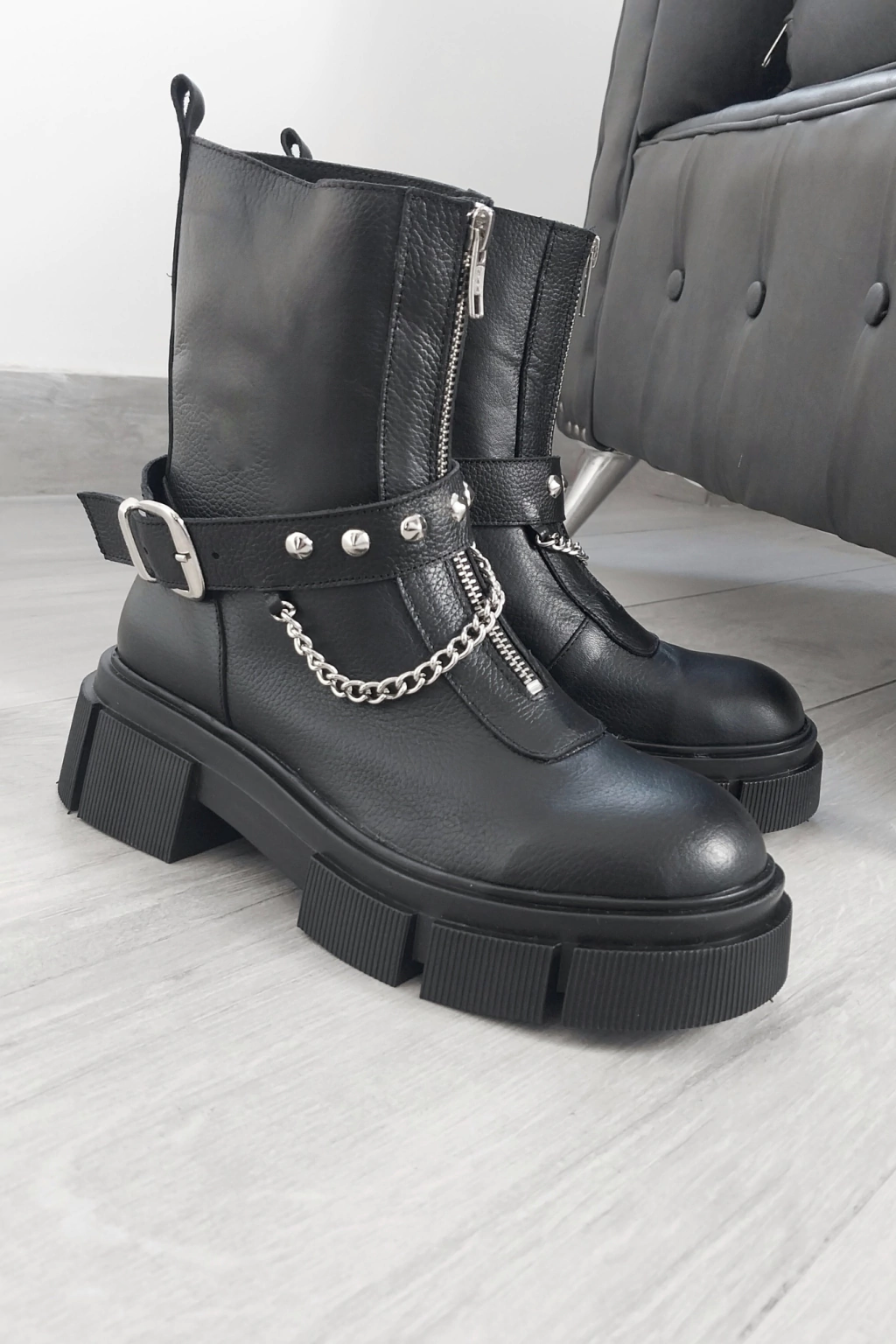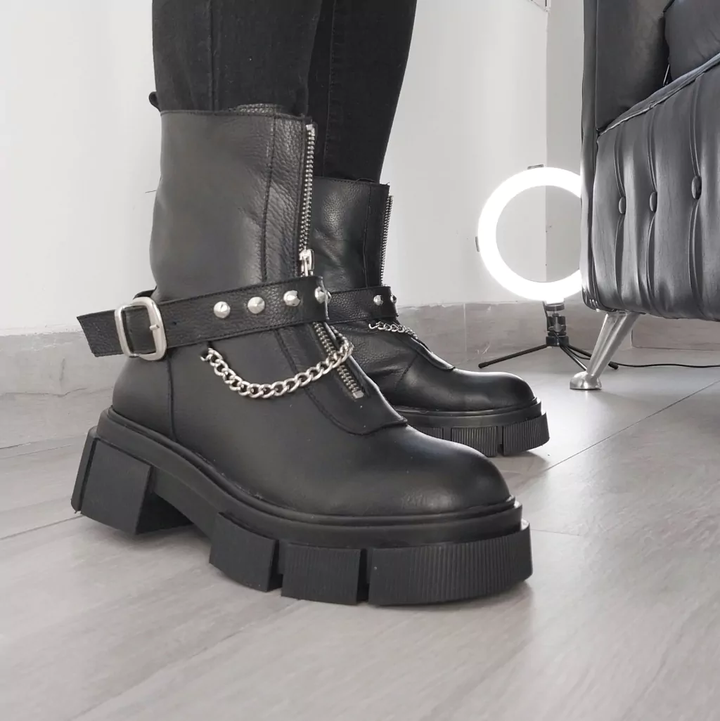 Detalle: Cinturon con tachas y cadena, que puede usarse con o sin el mismo.